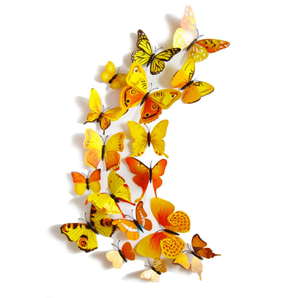 Бабочки на магните 12 шт пластик желтые с рис.