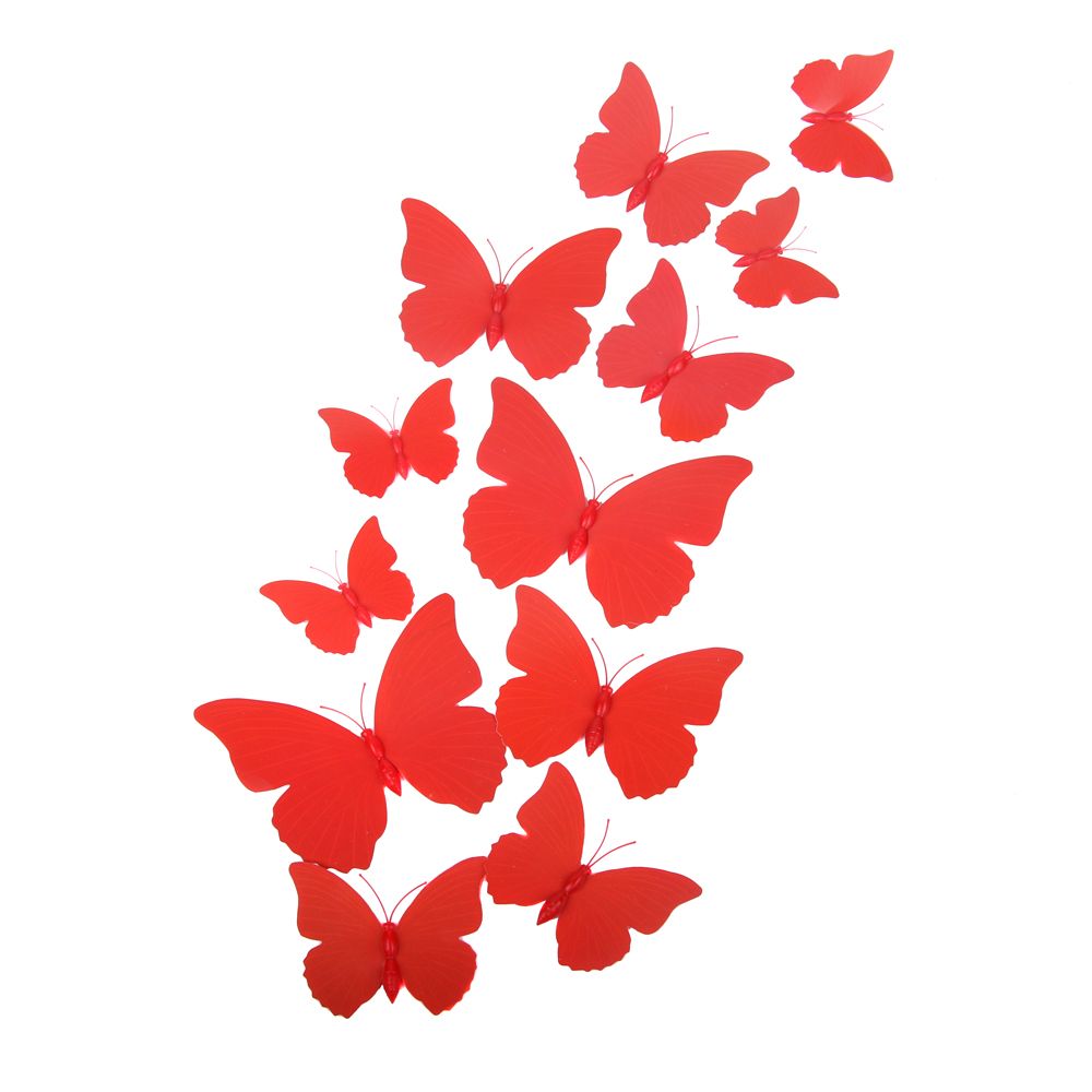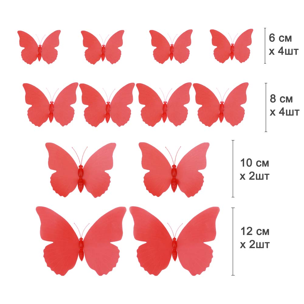 Бабочки на магните 12 шт пластик красные