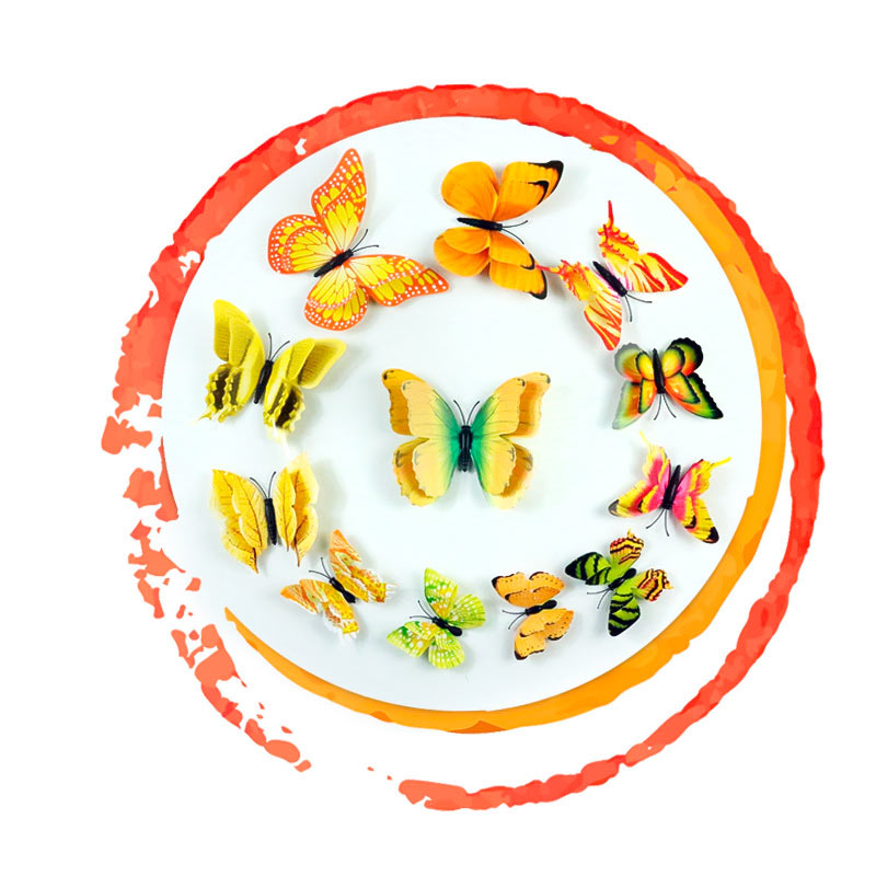Бабочки на магните двойные пластиковые 12 шт желтый с рис.