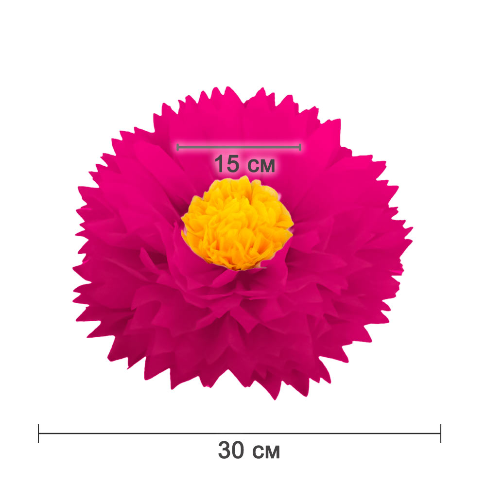 Бумажный цветок 30 см малиновый+ярко-желтый