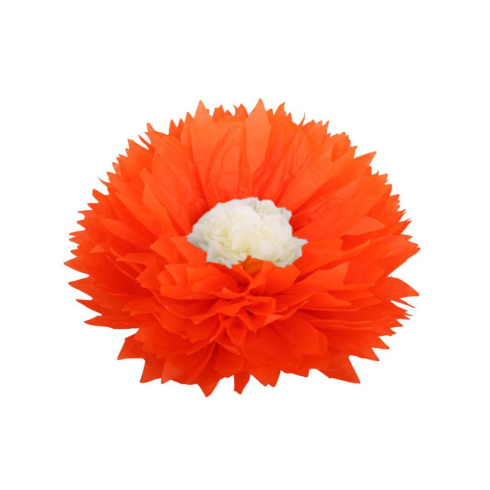 Бумажный цветок 30 см оранжевый+айвори