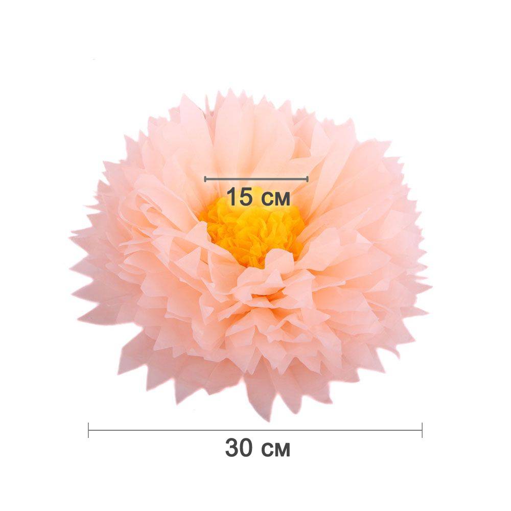 Бумажный цветок 30 см персиковый+ярко-желтый