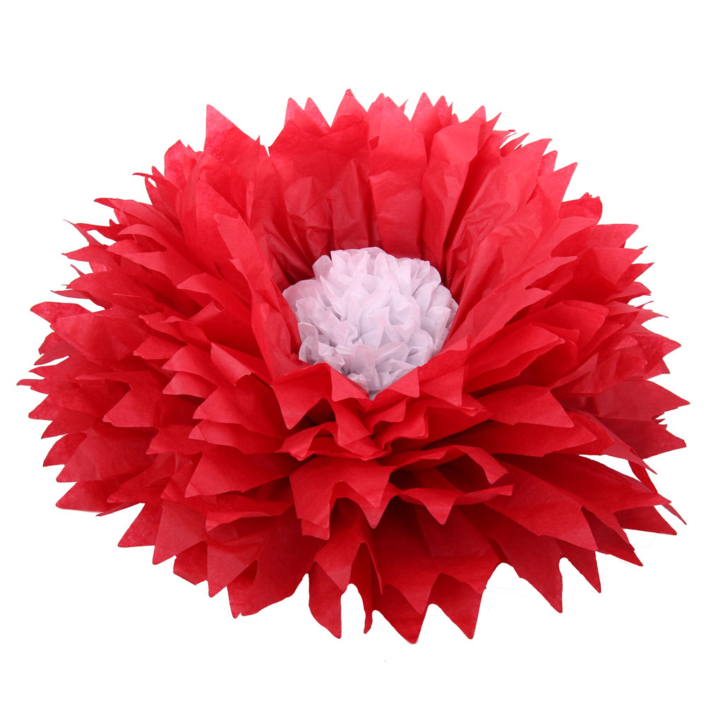 Бумажный цветок 40 см красный+белый
