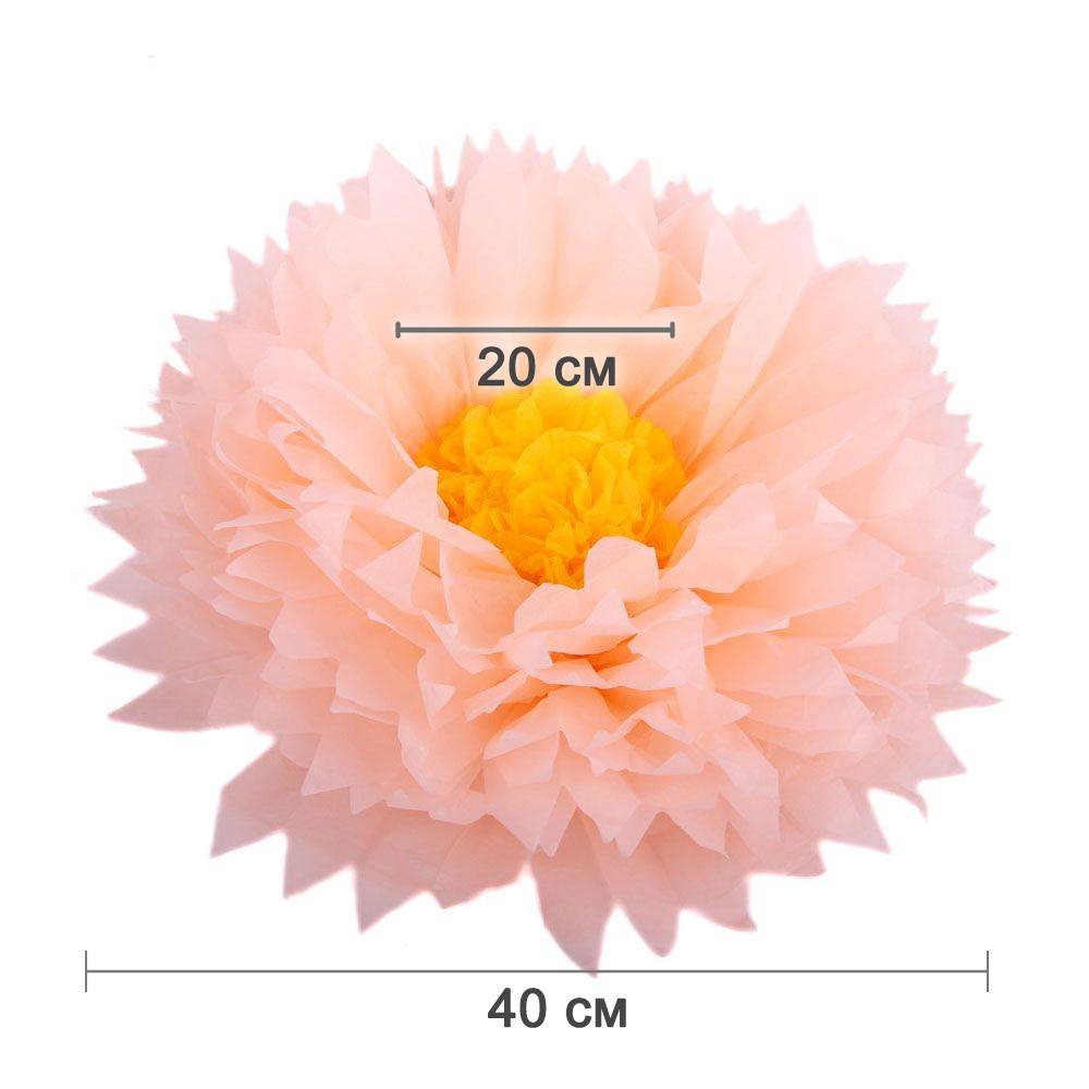 Бумажный цветок 40 см персиковый+ярко-желтый