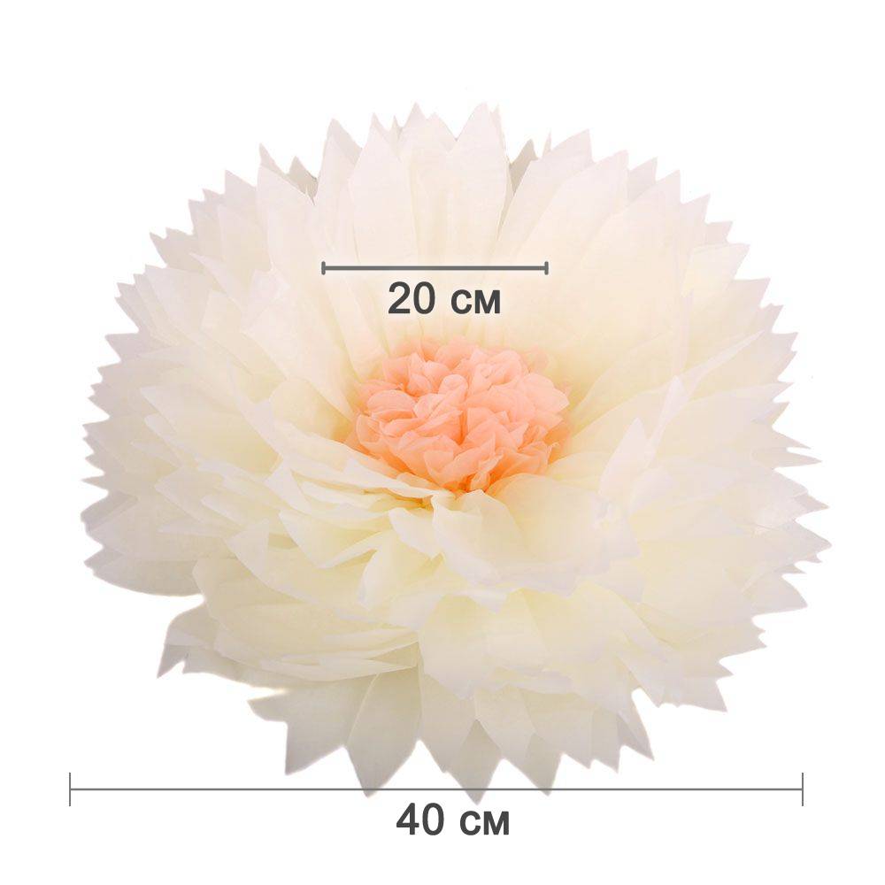 Бумажный цветок 40 см айвори+персиковый