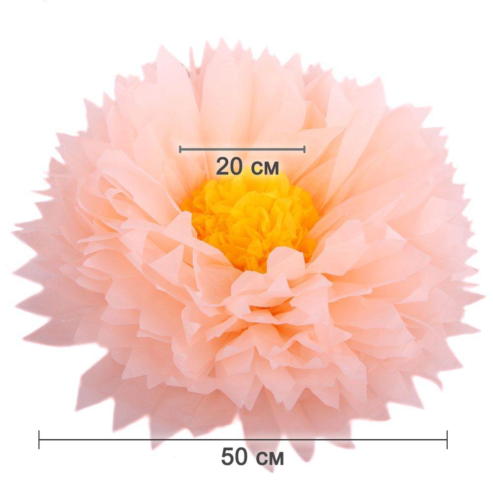 Бумажный цветок 50 см персиковый+ярко-желтый