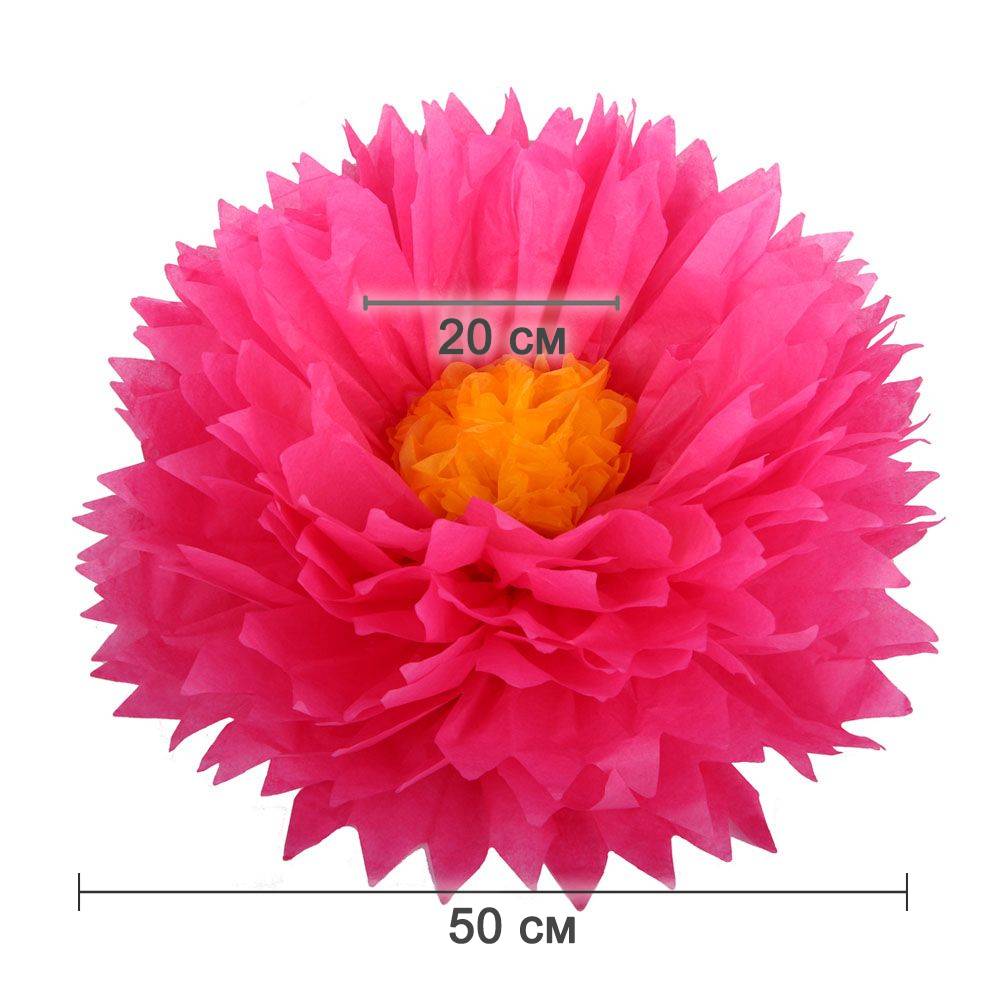 Бумажный цветок 50 см амарантовый+ярко-желтый