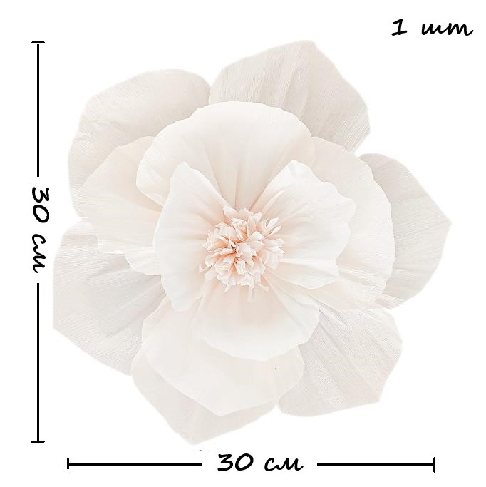 Бумажный цветок гофрированный 30 см айвори+айвори