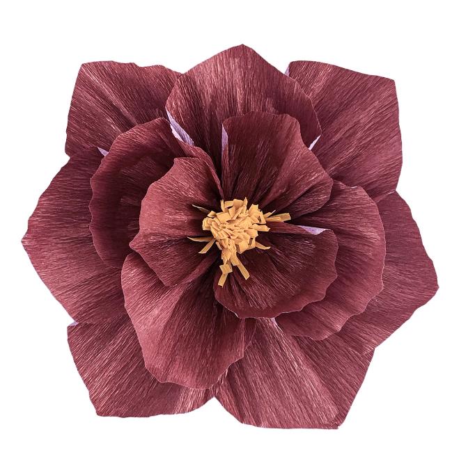 Бумажный цветок гофрированный 30 см бордовый+белый