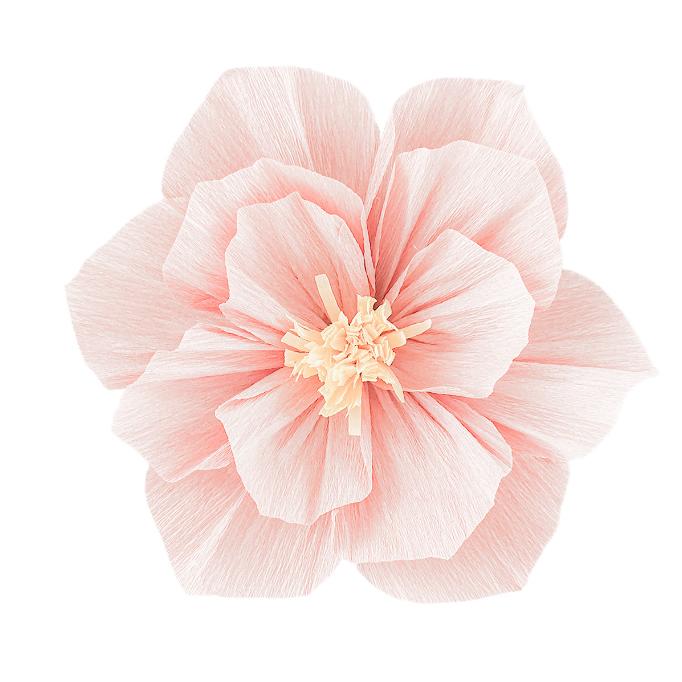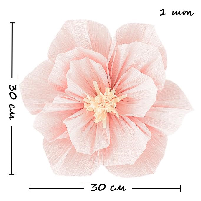 Бумажный цветок гофрированный 30 см персиковый+белый