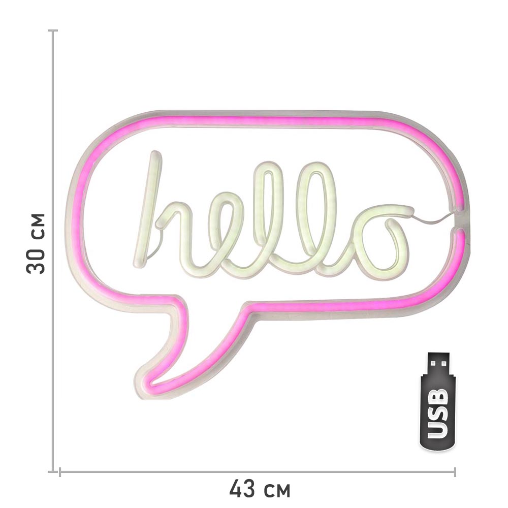 Cветильник LED NEON "Hello" 43 х 30 см, от USB