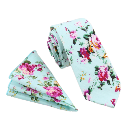 В комплект входит галстук 6х145 см и нагрудный платок 24х24 см  изготовлены из хлопка, имеют цветочный принт.