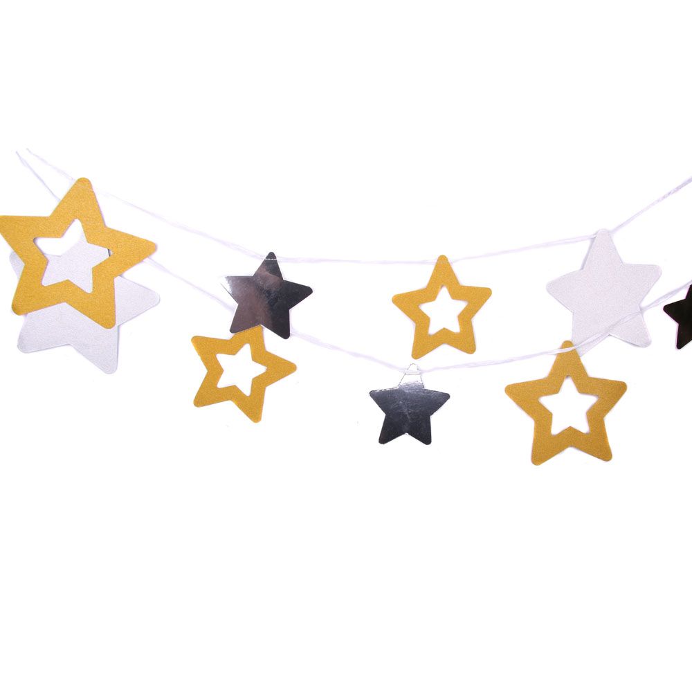 Гирлянда на ленте "Звезды" золото/серебро 4 м