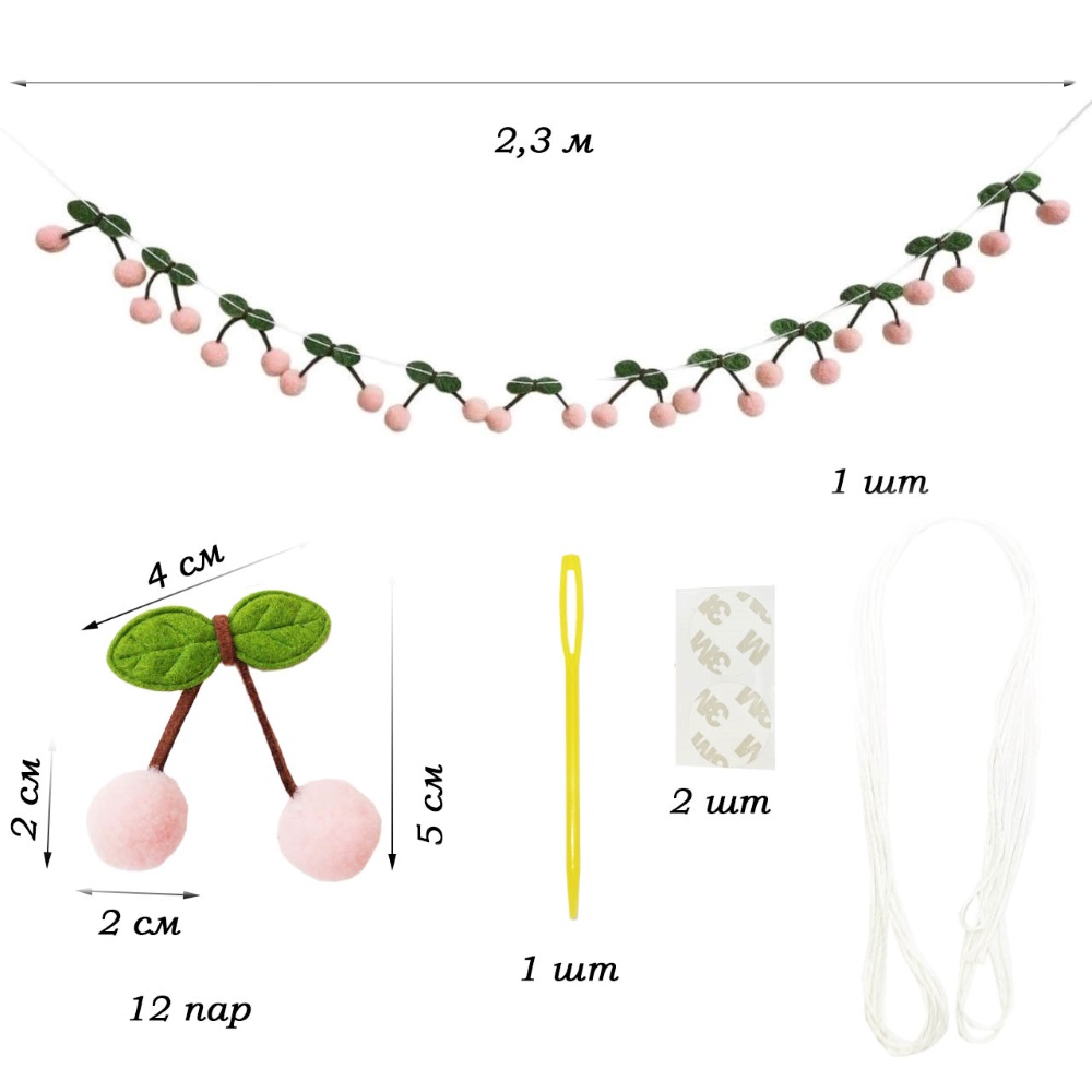 Гирлянда на веревке "Вишенки" 2 см х 24 шт х 2,3 м, "св.розовый" - 1 шт.