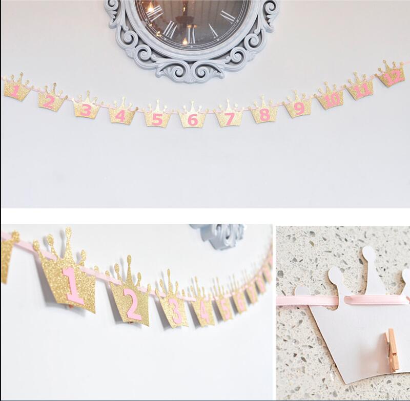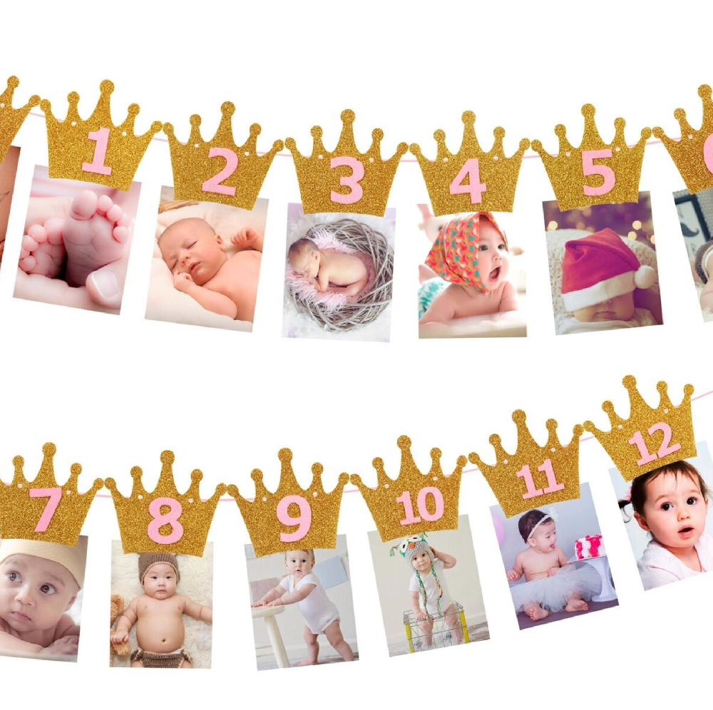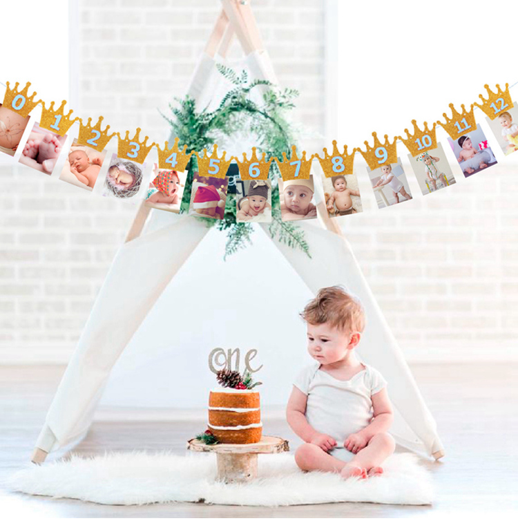 Гирлянда Первый годик, с прищепками для фото 3 м, золото