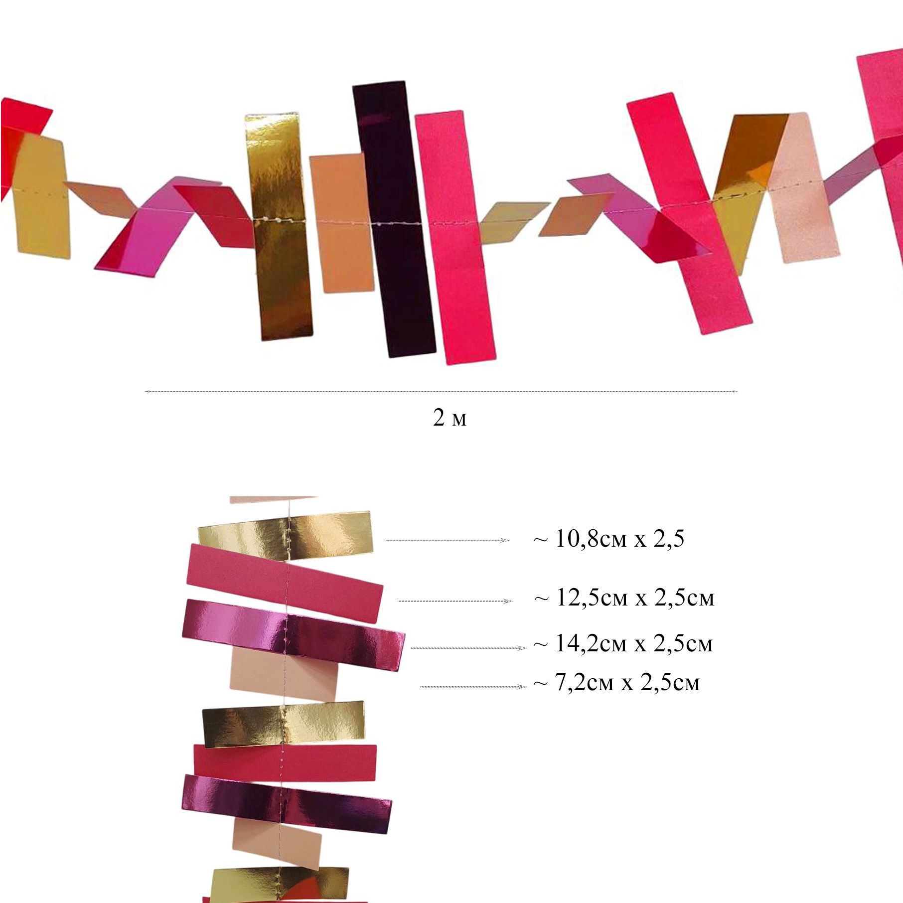 Гирлянда "Прямоугольники" 2 м золото+малиновый+розовый