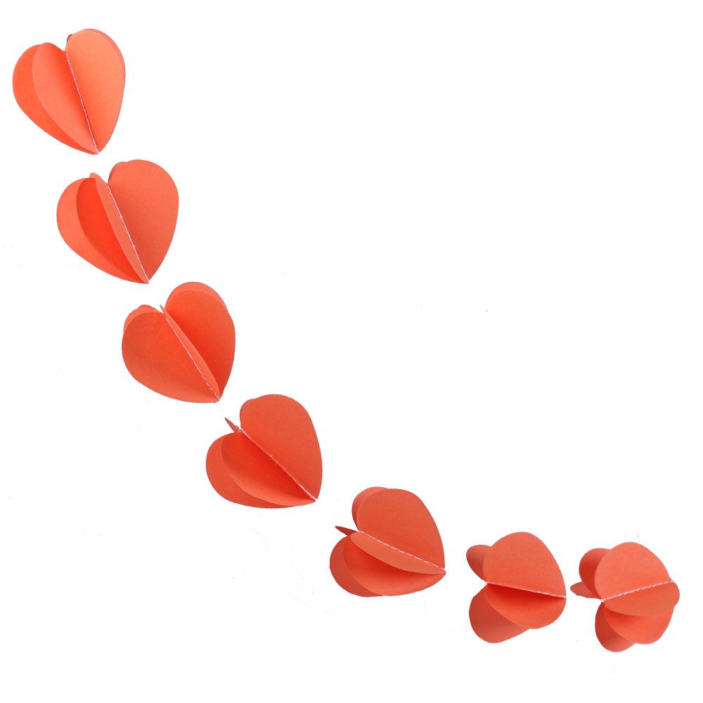 Гирлянда "Сердечки" оранжевая 5,5 см х 2,2 м