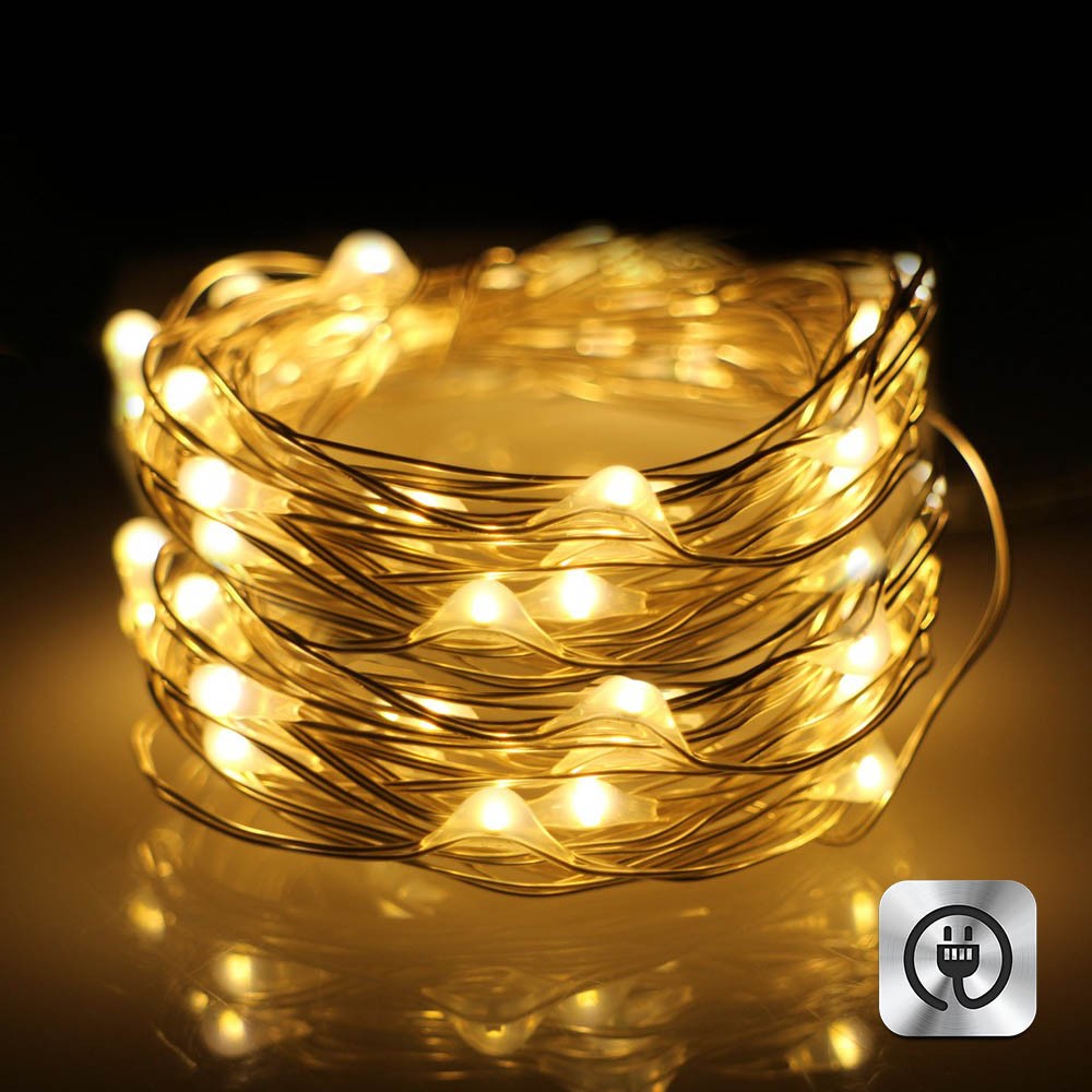 Нить "Роса" медь,10 м х 100 диодов, от сети, теплый белый