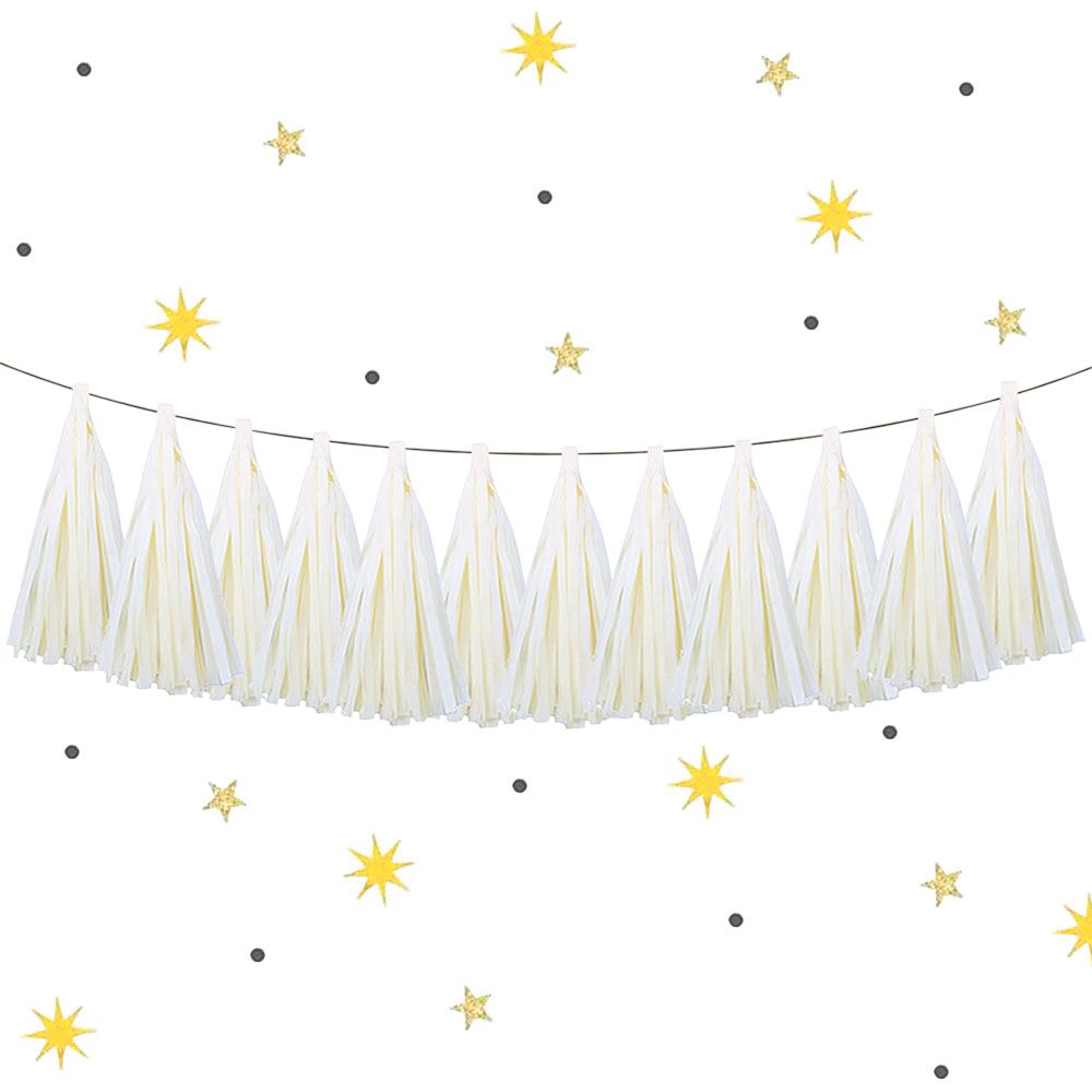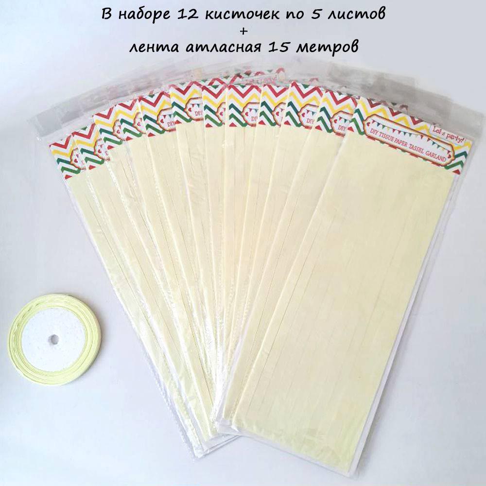 Гирлянда тассел 12 кисточек по 5 листов, айвори