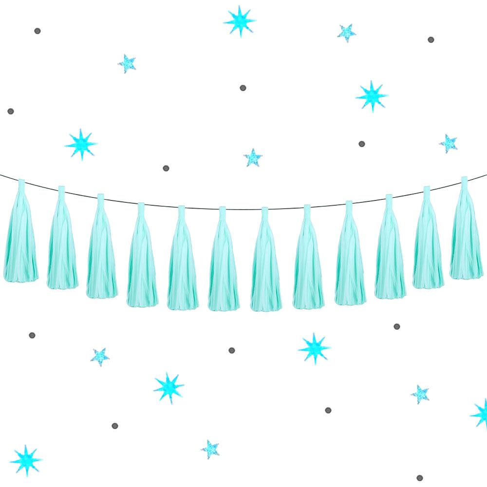 Гирлянда тассел 12 кисточек по 5 листов, мятный