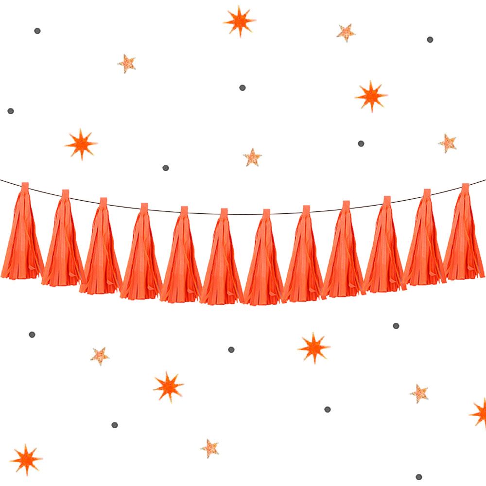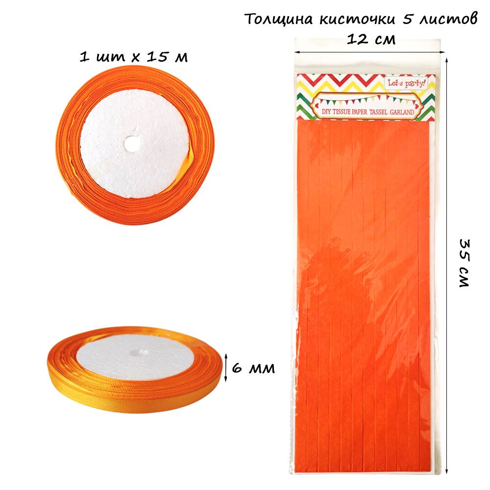 Гирлянда тассел 12 кисточек по 5 листов, оранжевый