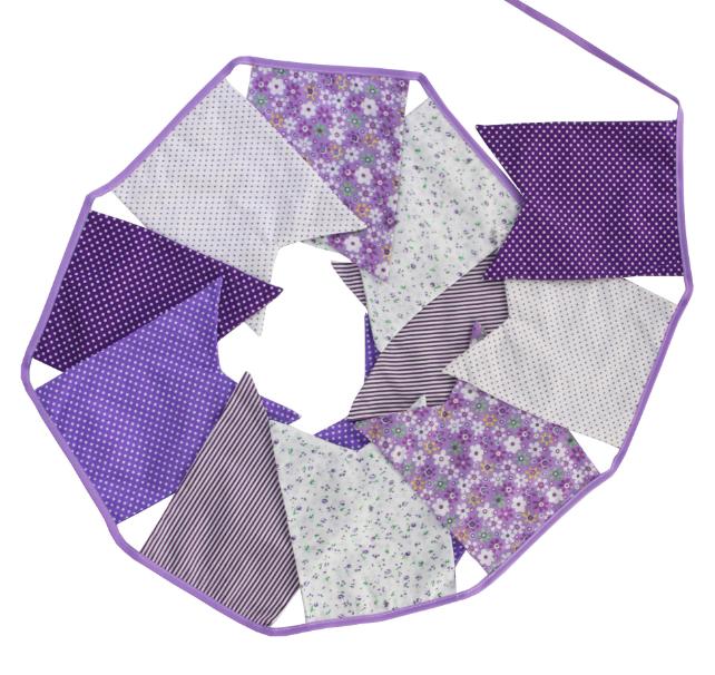 Гирлянда состоит из 12 флажков, общая длина составляет 3,4 м, расстояние между флажками 3 см, длина матерчатых флажков 2,1 м, длина лямок с обеих сторон по 50 см