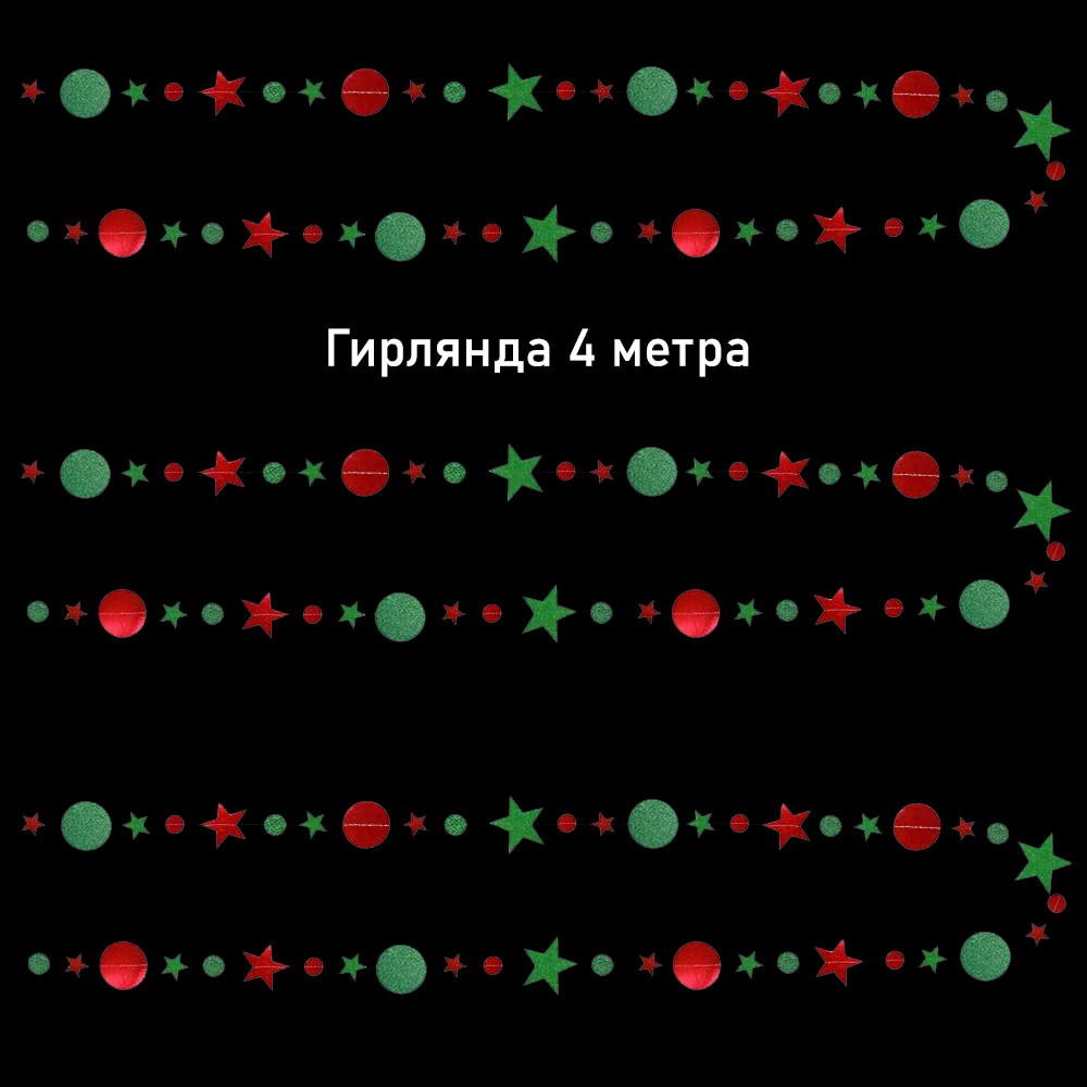 Гирлянда Звезды/Кружочки 4 м металлик Красный/ блеск Зелёный