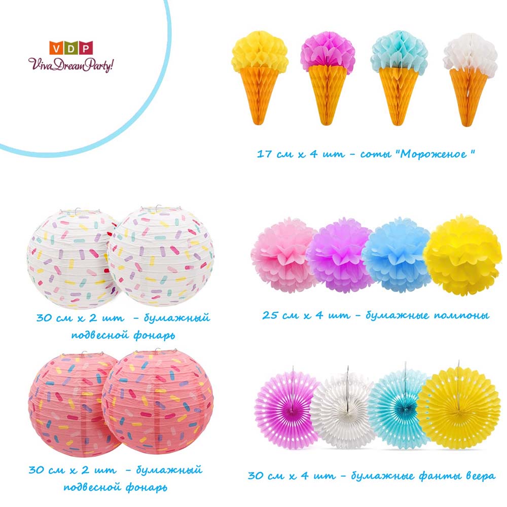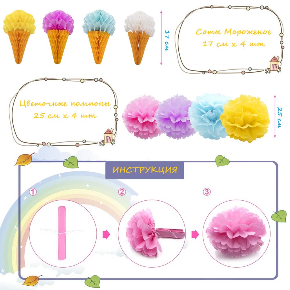 Бумажное украшение сота "Мороженое", 4 шт