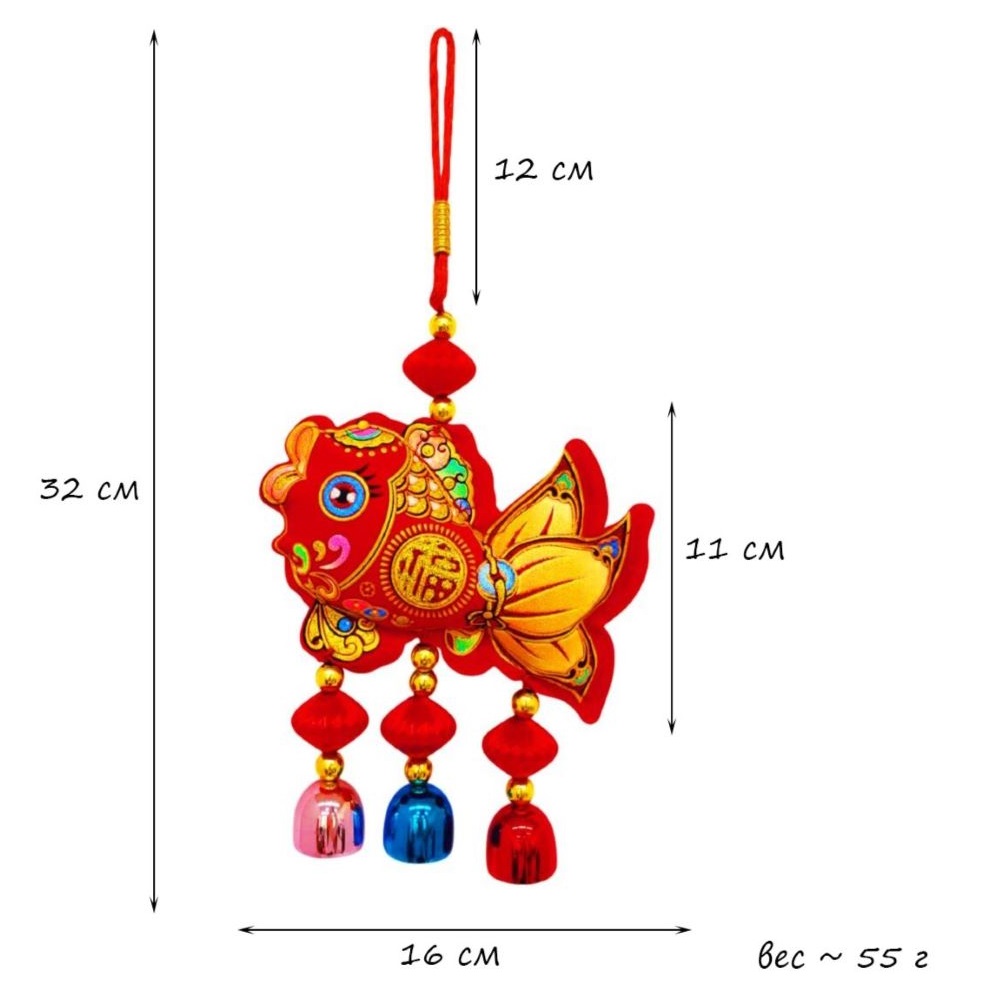 Китайская подвеска с колокольчиками 16х32см, Рыбка - 1 шт