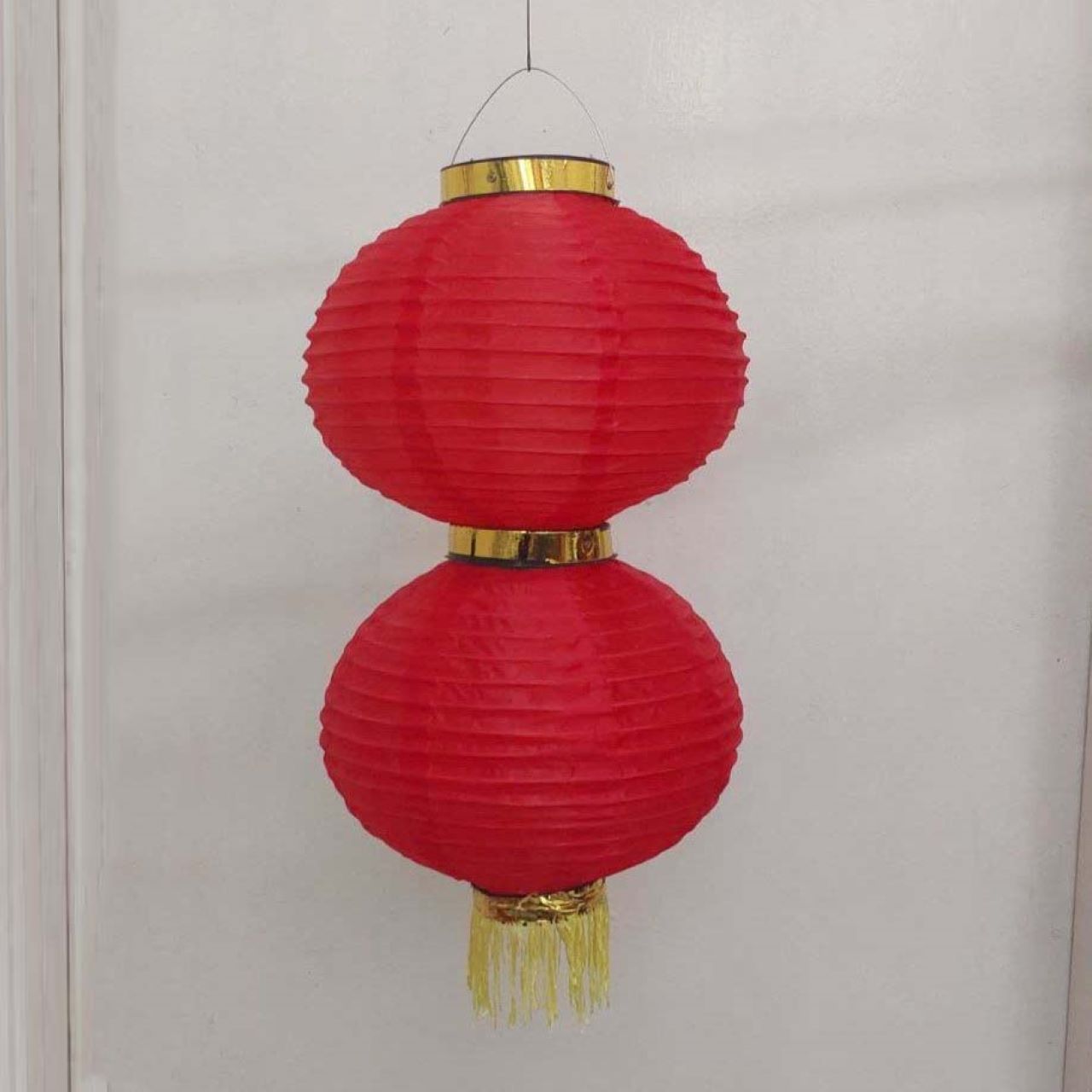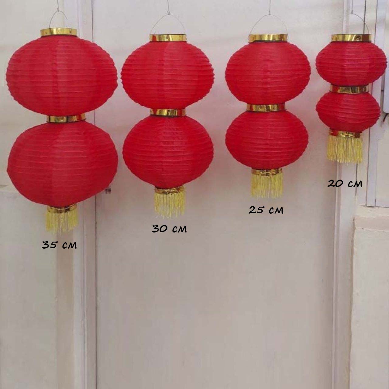 Круглый китайский фонарь состоит из двух ярусов диаметром 30 см каждый.