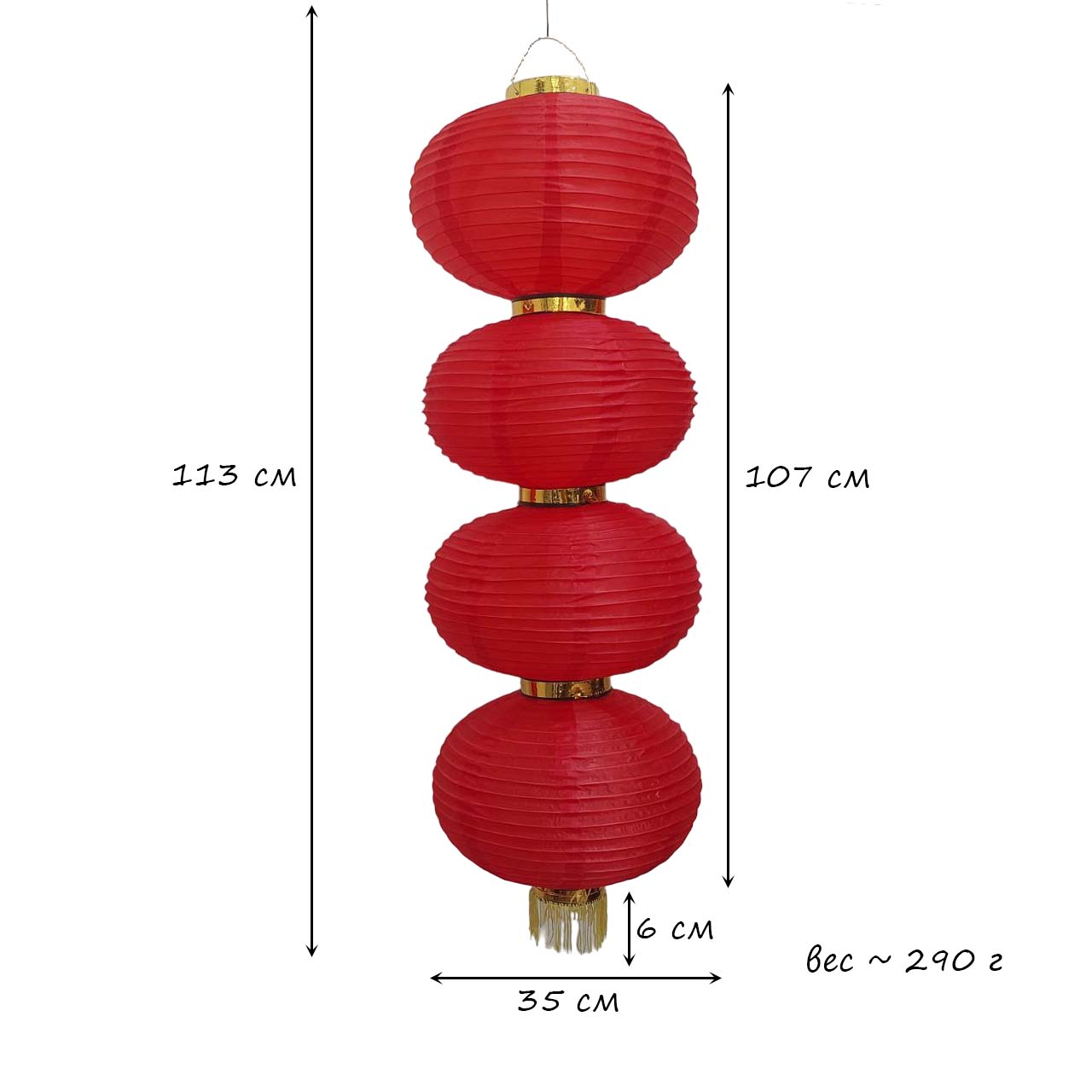 Круглый китайский фонарь состоит из четырех ярусов диаметром 35 см каждый.