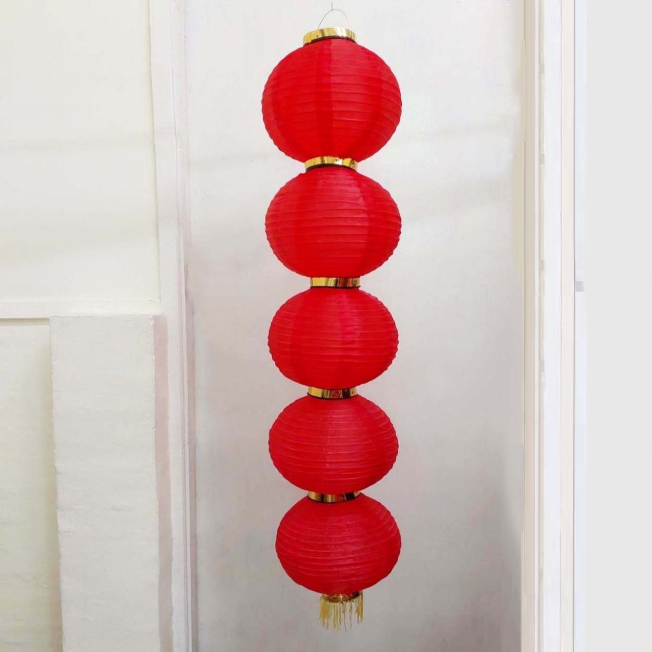 Круглый китайский фонарь состоит из пяти ярусов диаметром 30 см каждый.