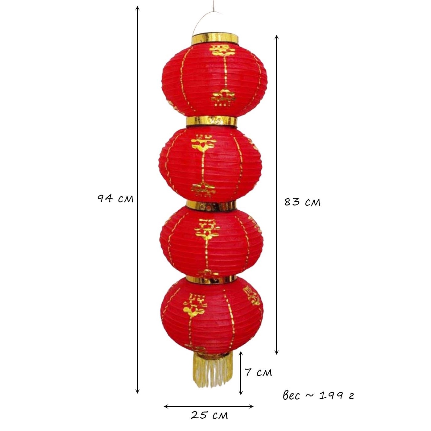 Китайский фонарь Круглый с рисунком, 4 яруса 25см