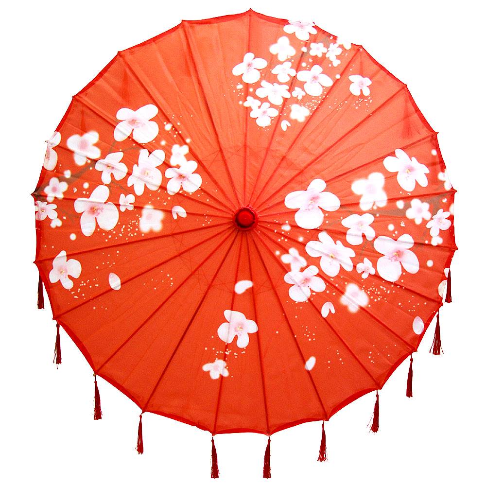 Китайские тканевые зонтики цветочные с кисточками 82х54 см