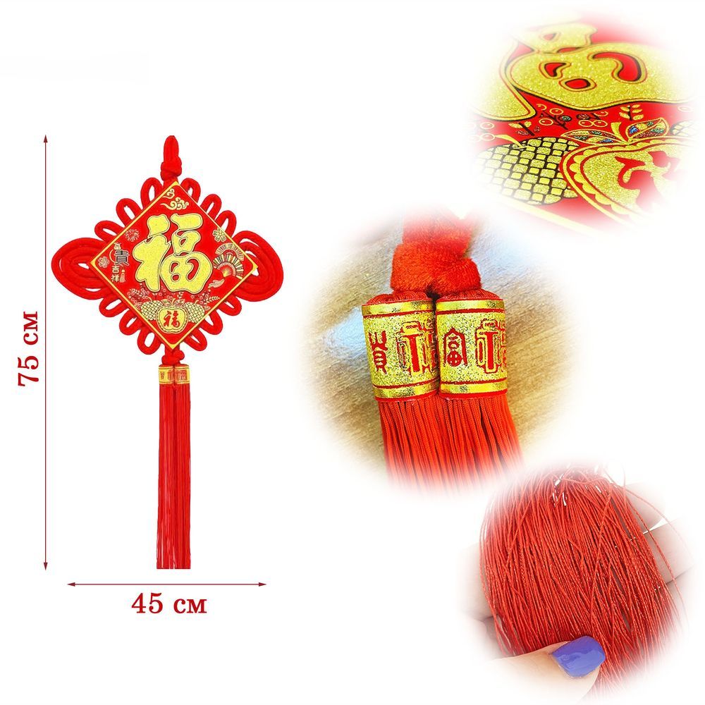 Китайский узел ромб золото кисточка 40х75см, Изобилие
