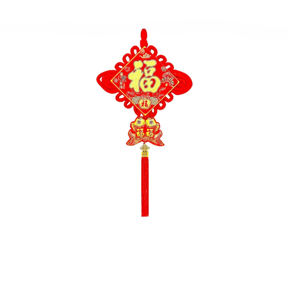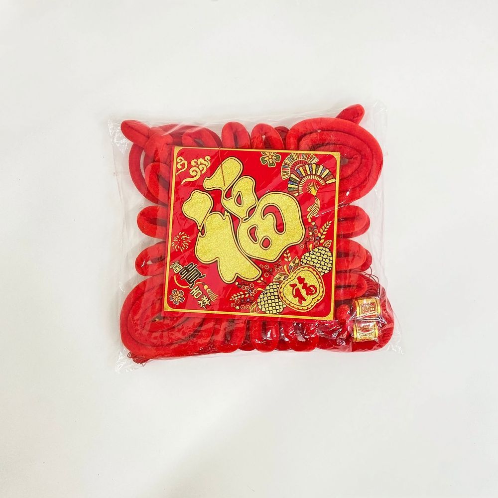 Традиционный китайский узел в форме ромба с символичным дизайном. Яркое сочетание красного бархата и золотых элементов создает эффектный акцент в интерьере.