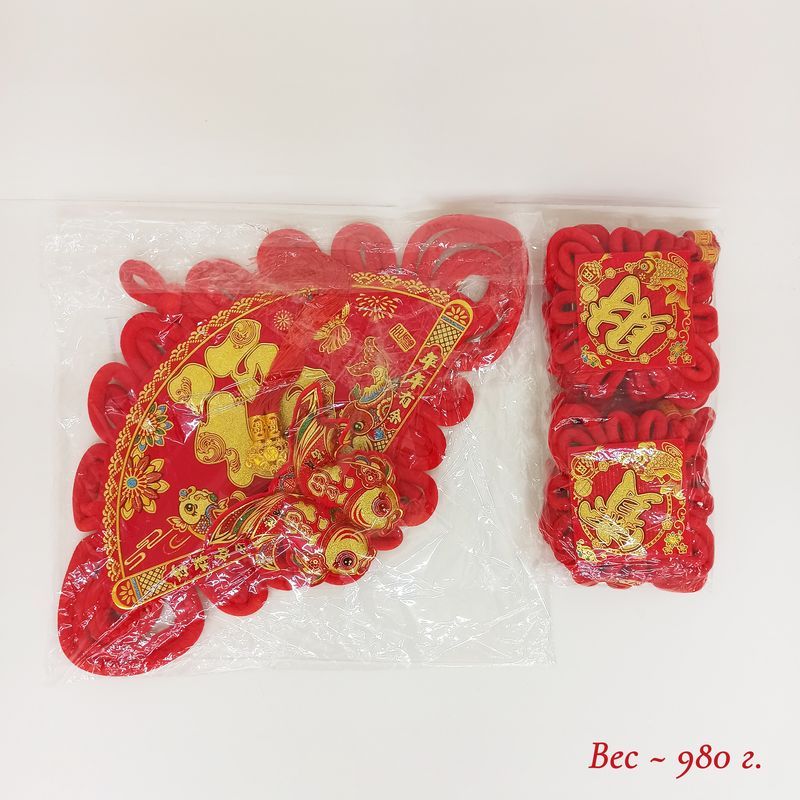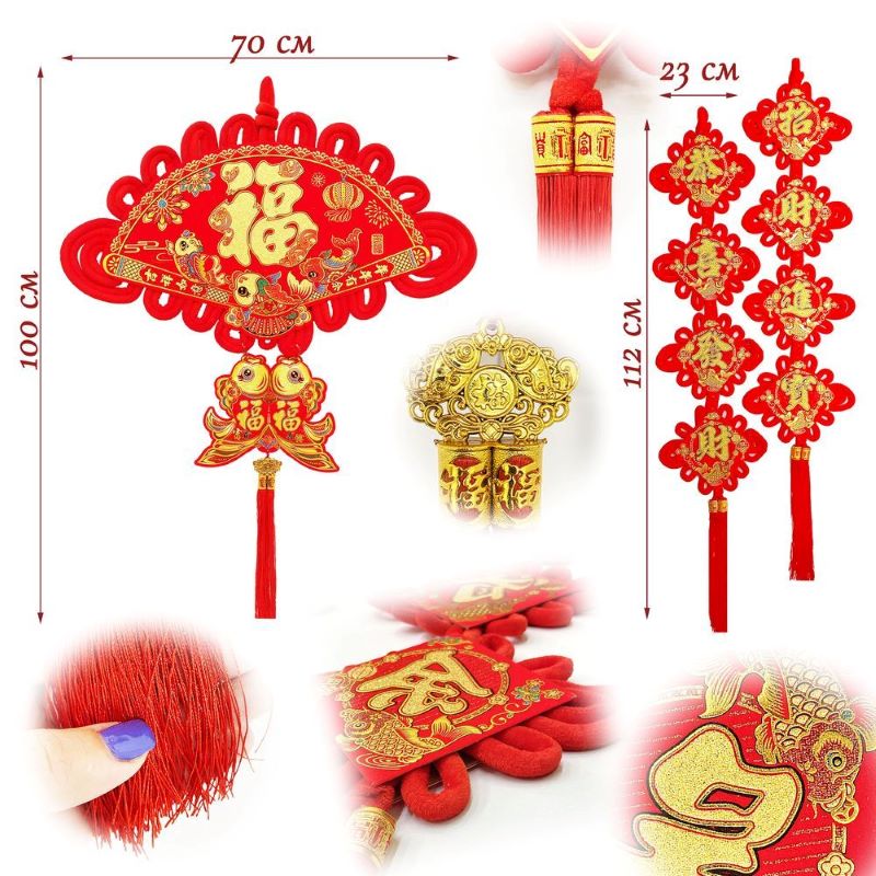 Китайский узел веер золото НАБОР 2шт (70х100см + 23х112см) рыбки, Богатство