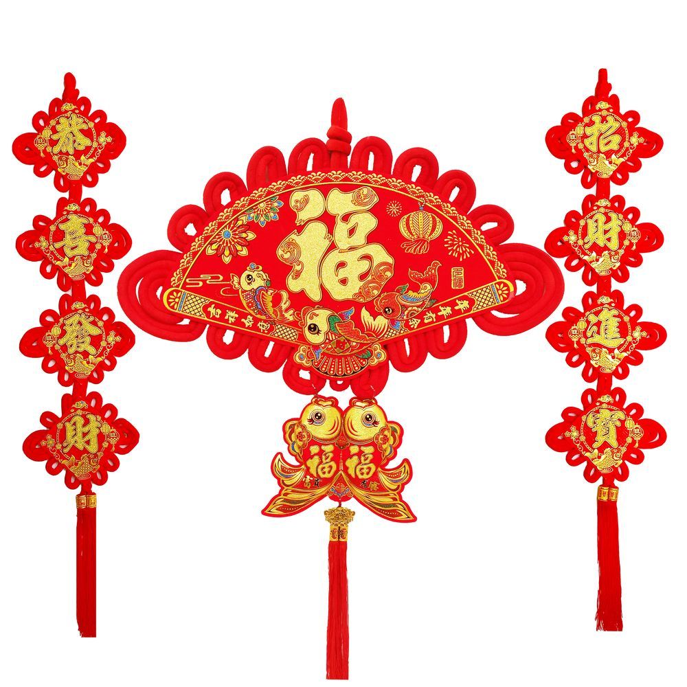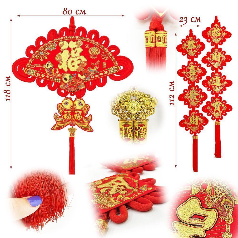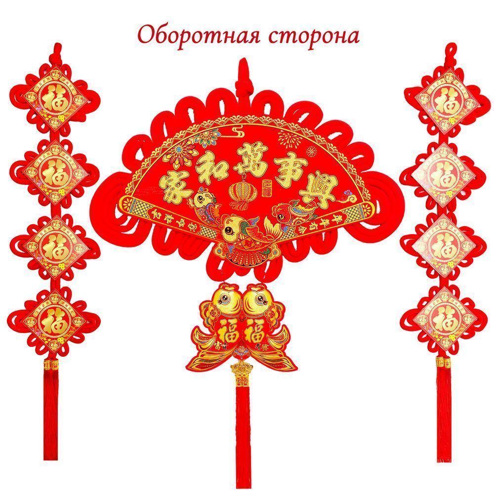 Китайский узел веер золото НАБОР 2шт (80х118см + 23х112см) рыбки, Богатство