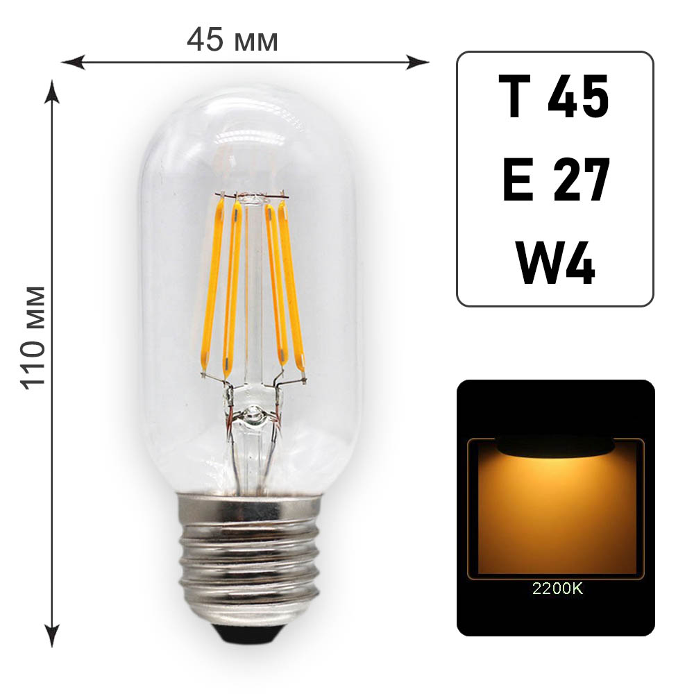 Лампа филаментная Т45 E27 W4 K2200