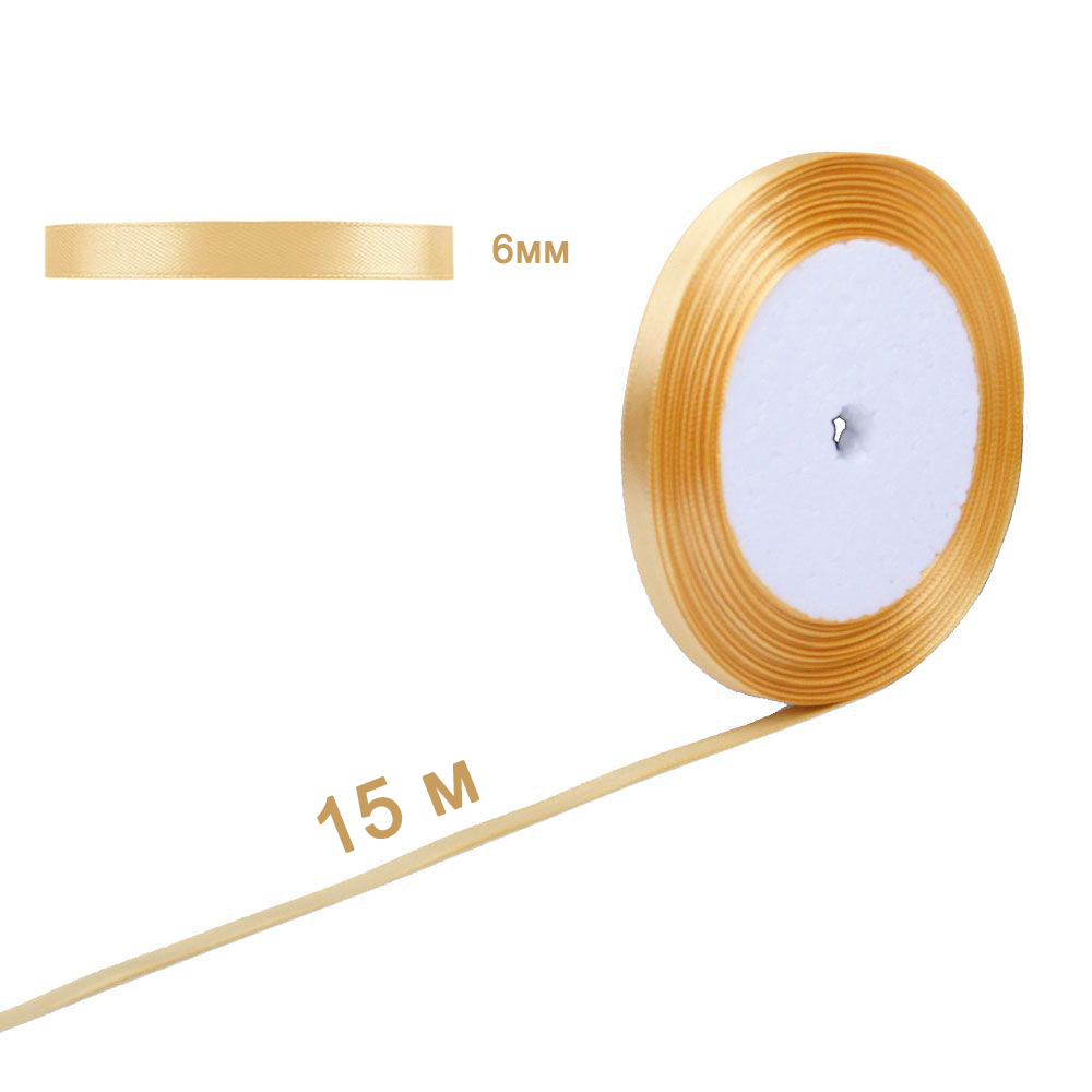 Лента атласная песочная 6 мм х 15 м