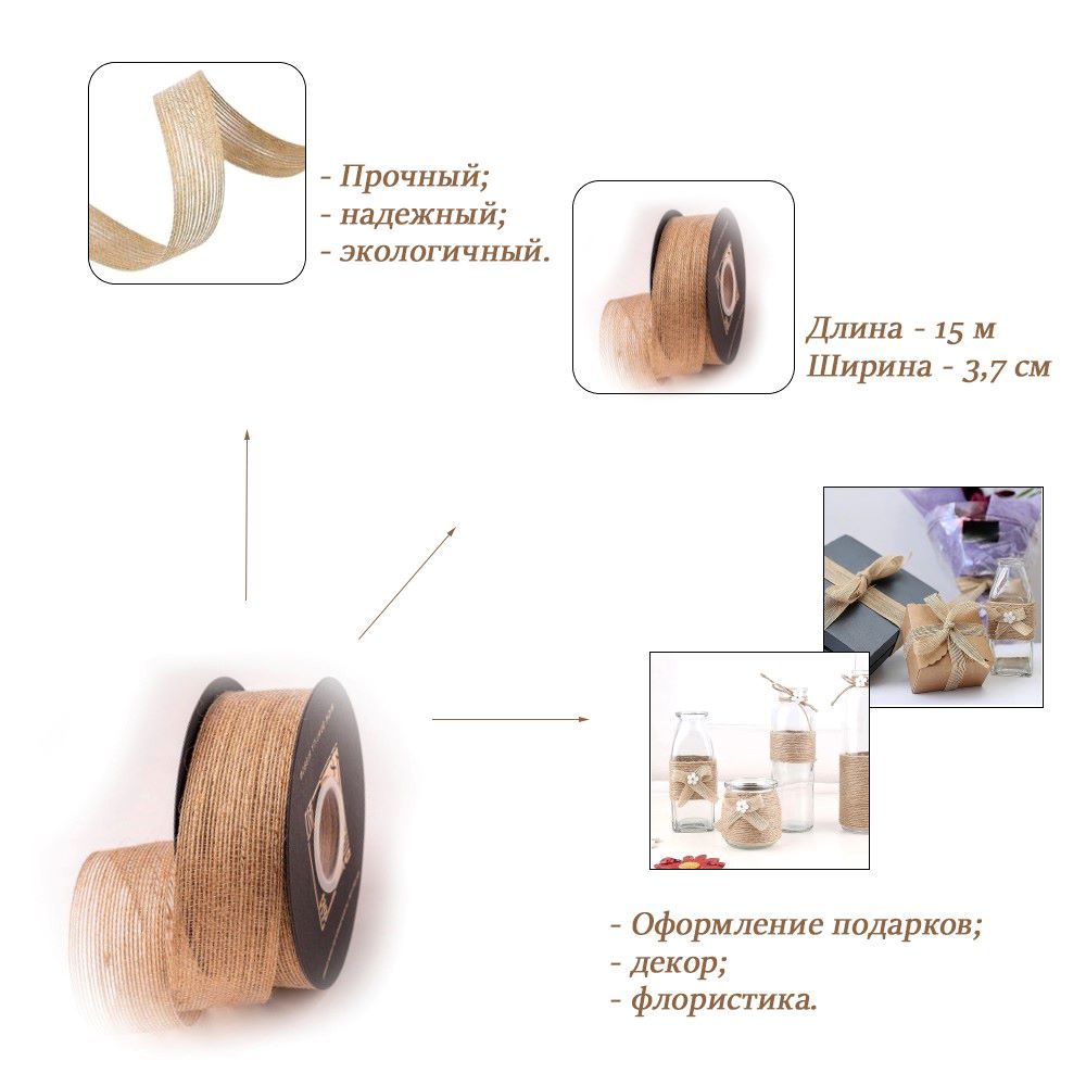 Лента из мешковины,натуральный 3,7см х 15м