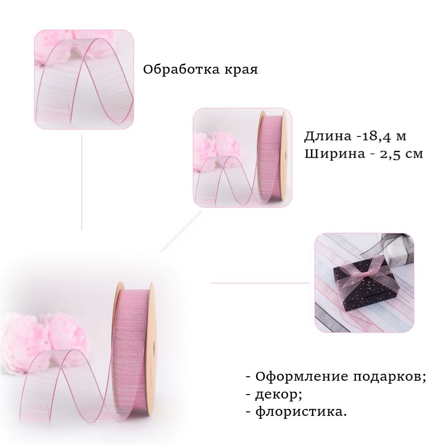 Лента из органзы полосы розовая 2,5см х 18,4м