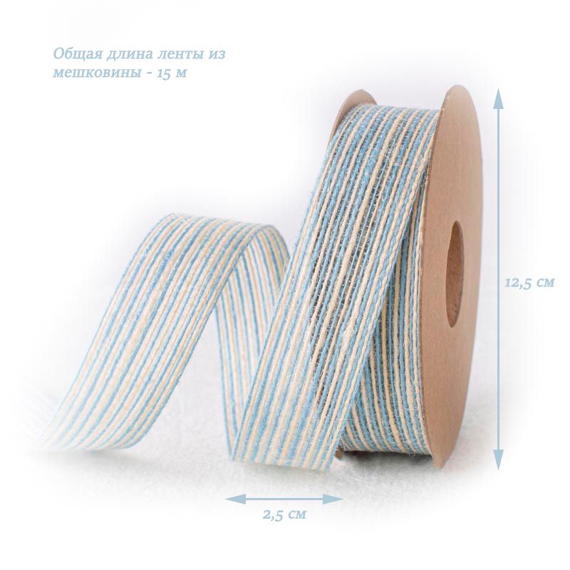 Лента из цветной мешковины,голубой 2,5см х 15м