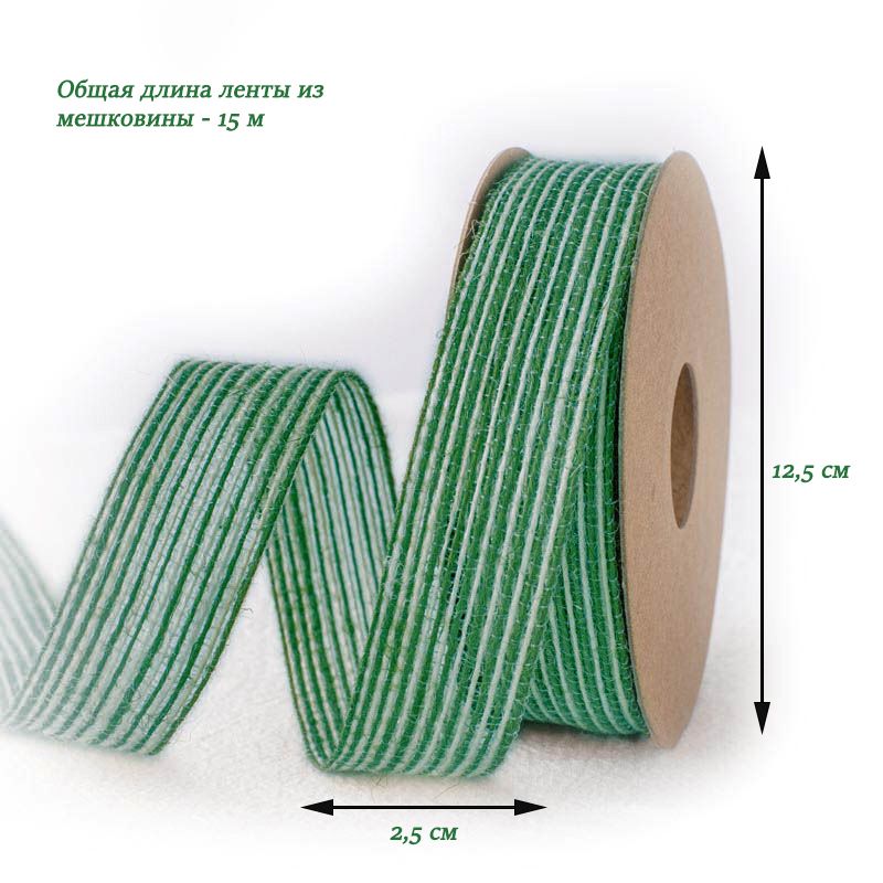 Лента из цветной мешковины,зелёный 2,5см х 15м
