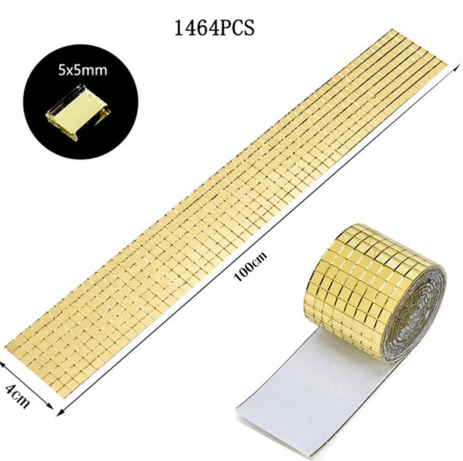 Лента самоклеящаяся зеркальная мозаика акрил 4см х 1м 5х5мм, золото