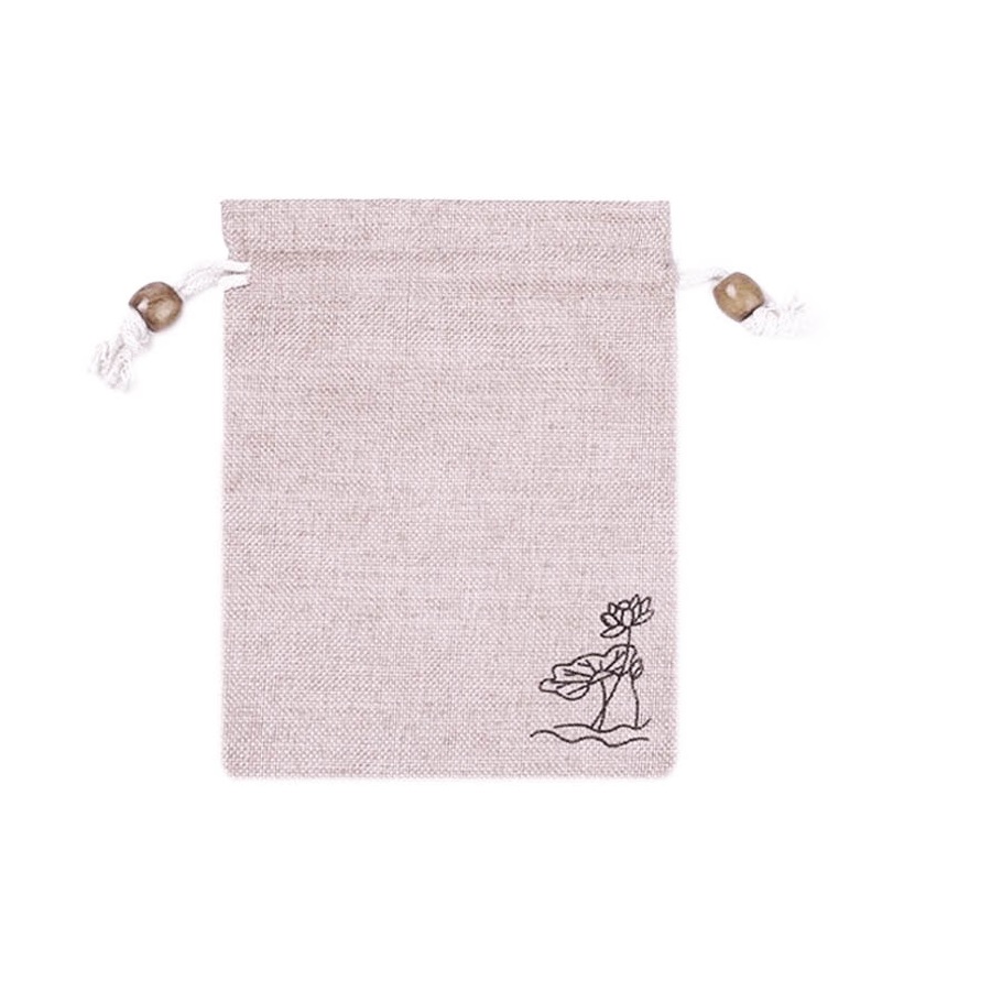 Мешочек из искусственного льна с орнаментом 14х19 см, нежно-розовый