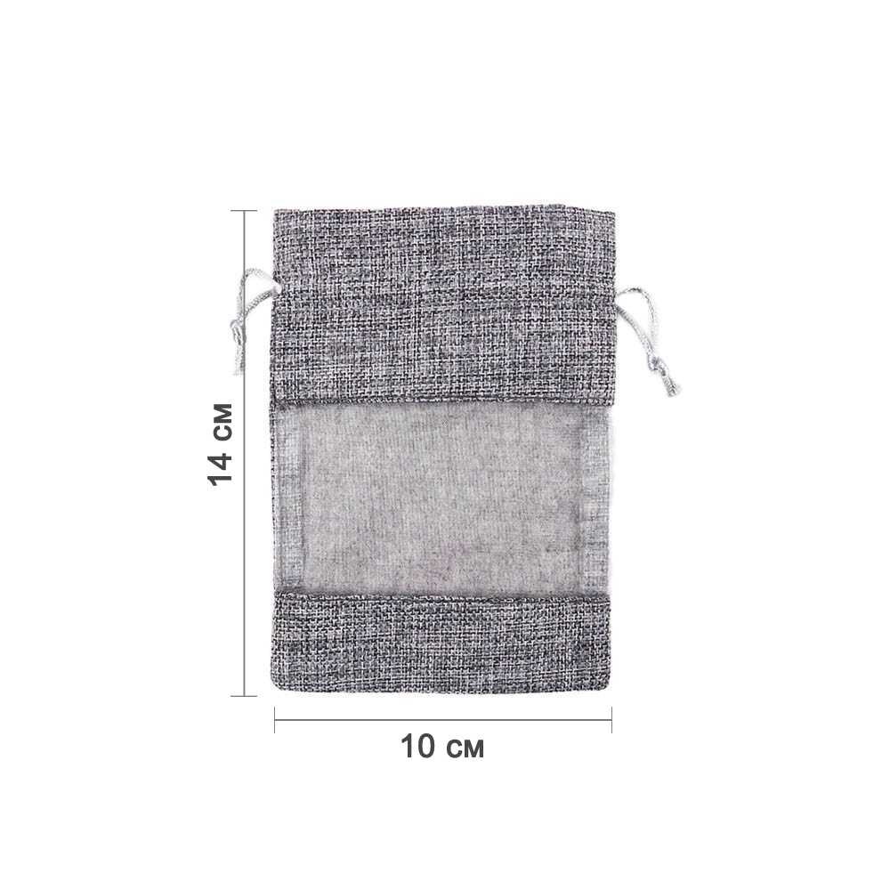 Декоративный мешочек с оригинальным дизайном: верх и дно выполнены из плотной мешковины, а центральная часть — из прозрачной органзы, благодаря чему содержимое хорошо видно со всех сторон. Такое сочетание материалов придаёт упаковке естественный, но при этом лёгкий и изящный вид.
