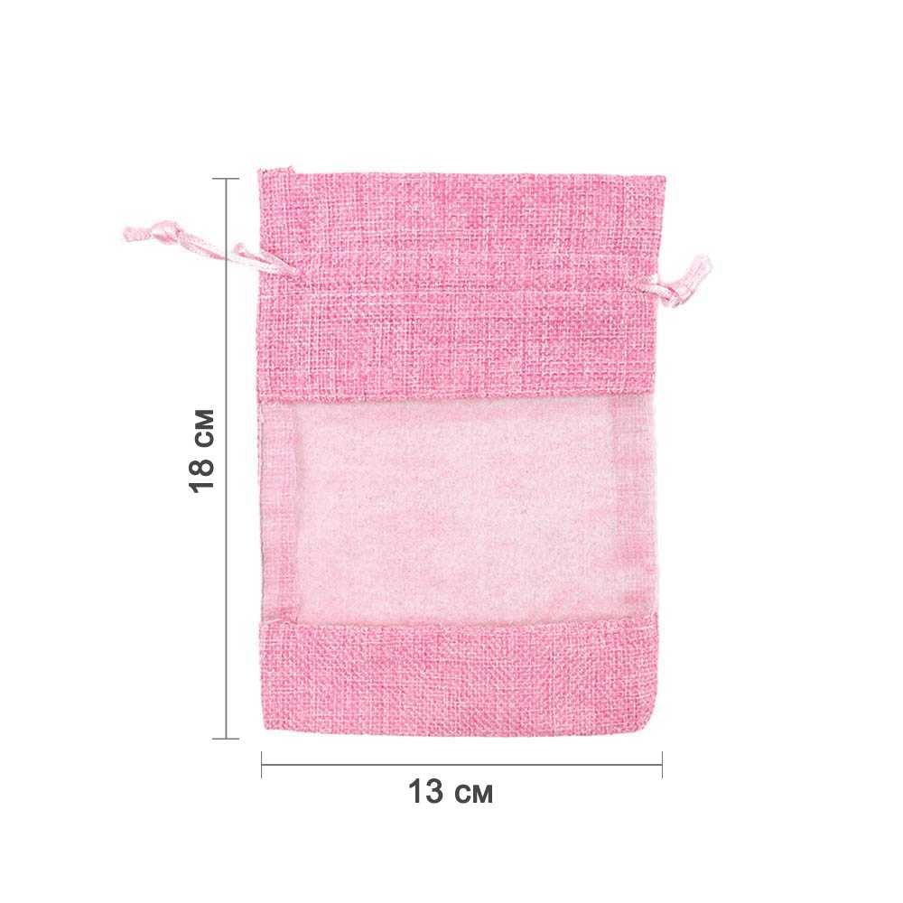 Декоративный мешочек с оригинальным дизайном: верх и дно выполнены из плотной мешковины, а центральная часть — из прозрачной органзы, благодаря чему содержимое хорошо видно со всех сторон. Такое сочетание материалов придаёт упаковке естественный, но при этом лёгкий и изящный вид.