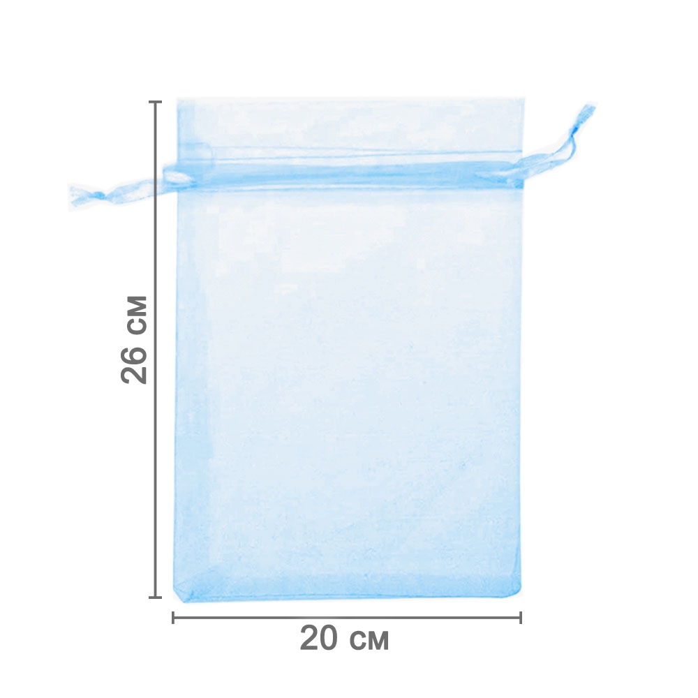 Мешочек из органзы 20 х 26 см — стильный аксессуар для упаковки средних и крупных предметов. Полупрозрачная ткань подчёркивает содержимое и придаёт аккуратный вид.