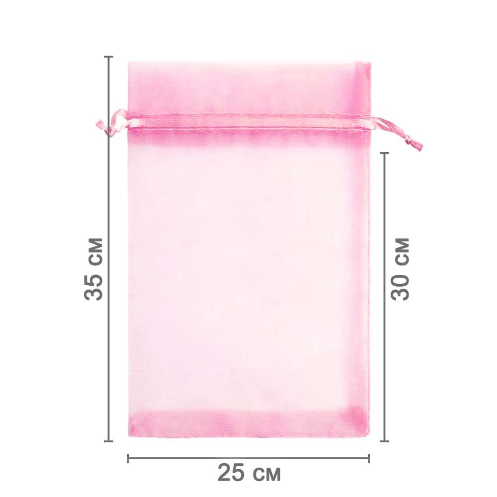 Мешочек из органзы 25 х 35 см — практичный аксессуар для упаковки крупных предметов и подарков. Лёгкая ткань подчёркивает содержимое и придаёт праздничный вид.